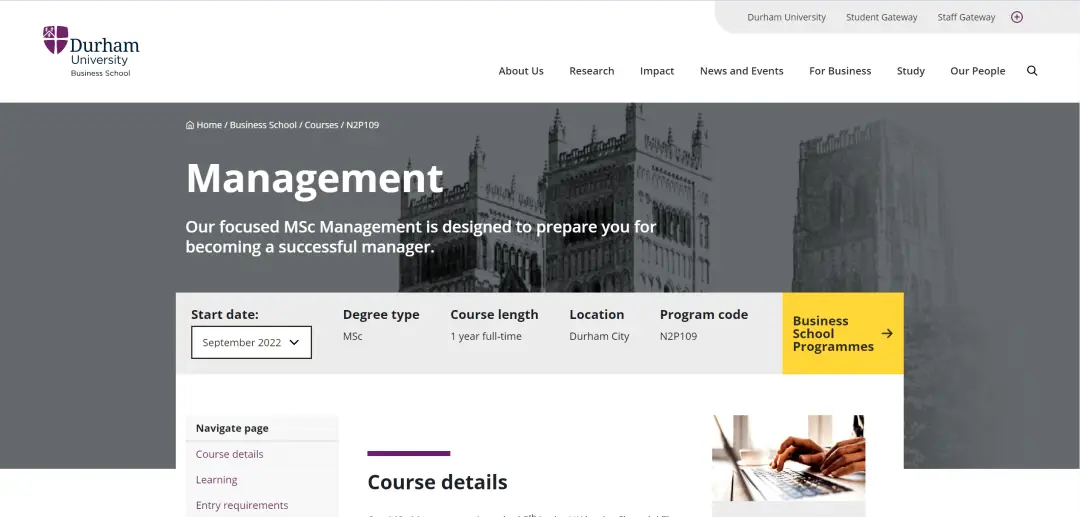 杜伦大学商学院-管理学硕士专业 | 图源:杜伦官网