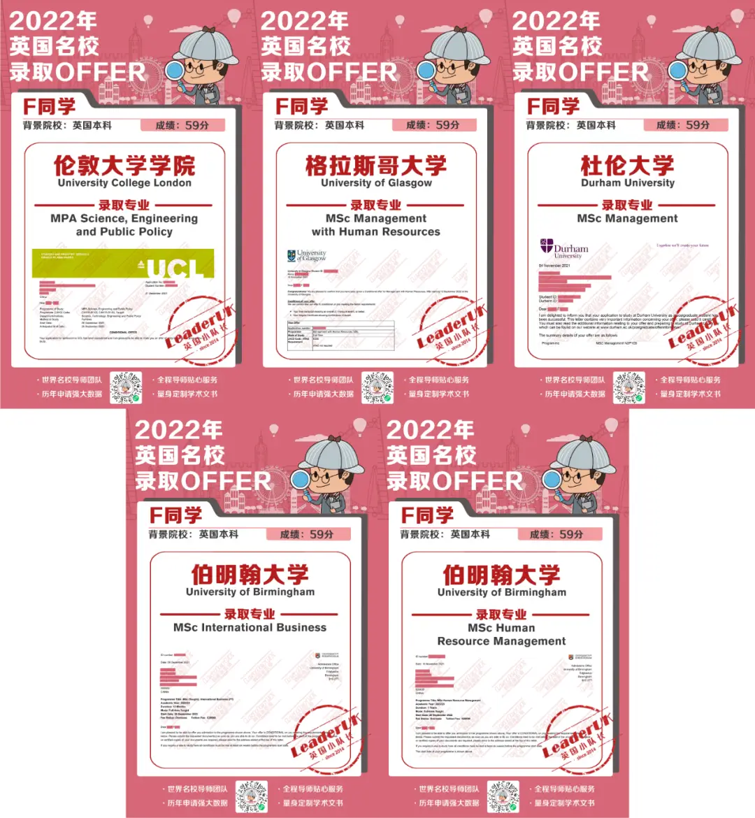 最后,F同学成功收获了杜伦、格拉、伯明翰的offer!