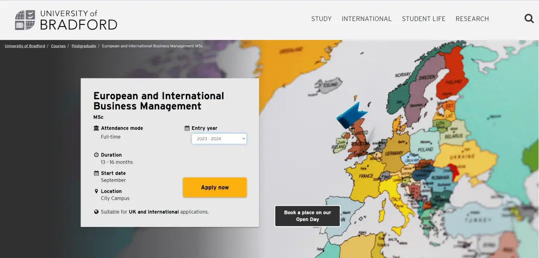 布拉德福德大学-欧洲与国际商务管理硕士专业 | 图源:布拉德福德官网