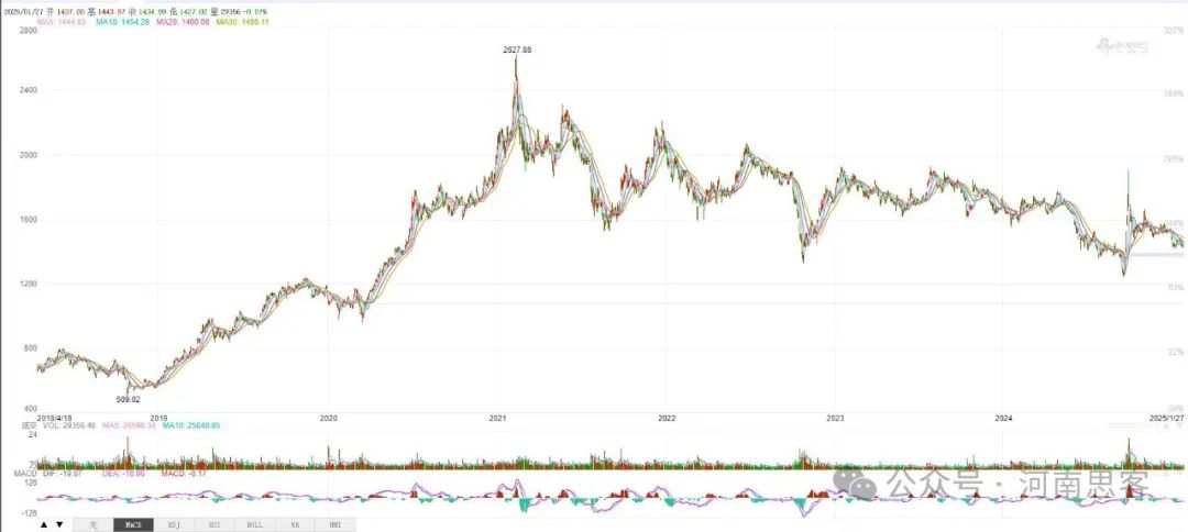 贵州茅台(SH.600519)股价微缩图,股价历史最高为2627.88元,号称“股市一哥” (杨海燕制作)
