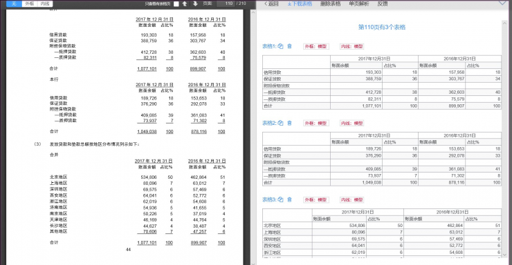 也发布了一个免费版本,当前还未对速度进行优化。经雷锋网AI金融评论尝试,北京银行210页年报大约处理用时7~8分钟,杭州银行15页的2018一季度报只用了3分钟。
