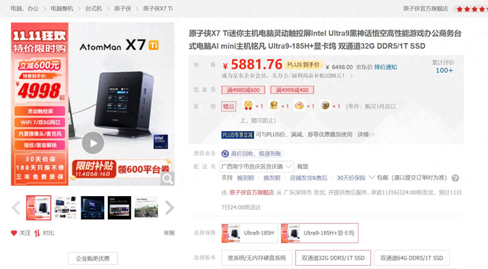 X7 Ti提供了准系统、32G+1T、64G+1T三个选项,同时有带显卡坞的版本。