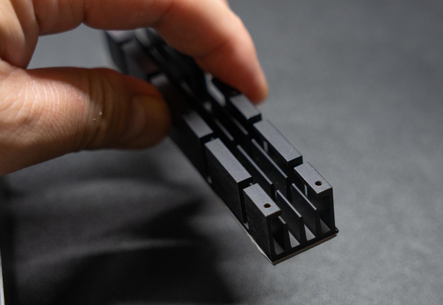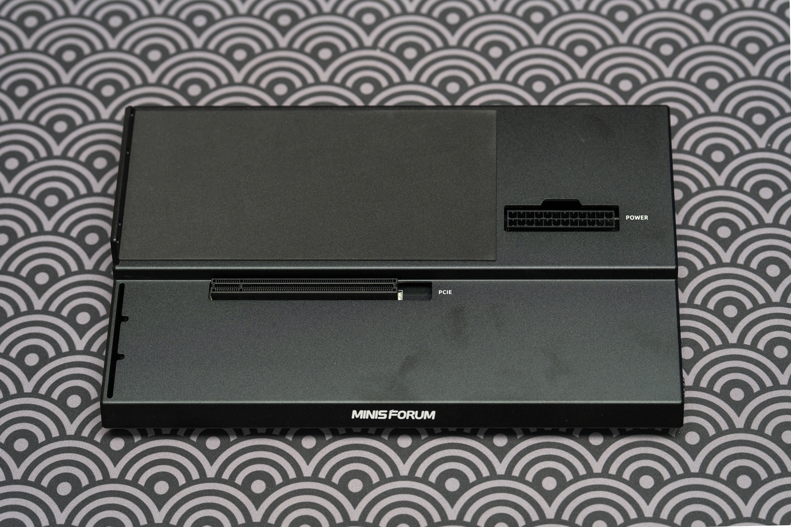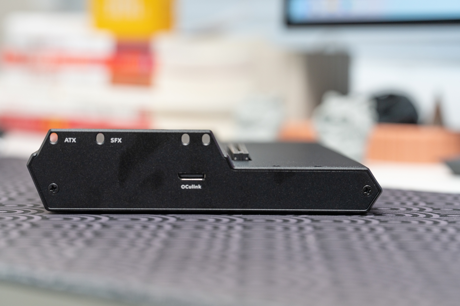 扩展坞支持AT与SFX两种规格的电源并配备了合适的螺孔安装,底部两个固定电源,上部固定显卡,放在桌面是肯定稳稳的了。