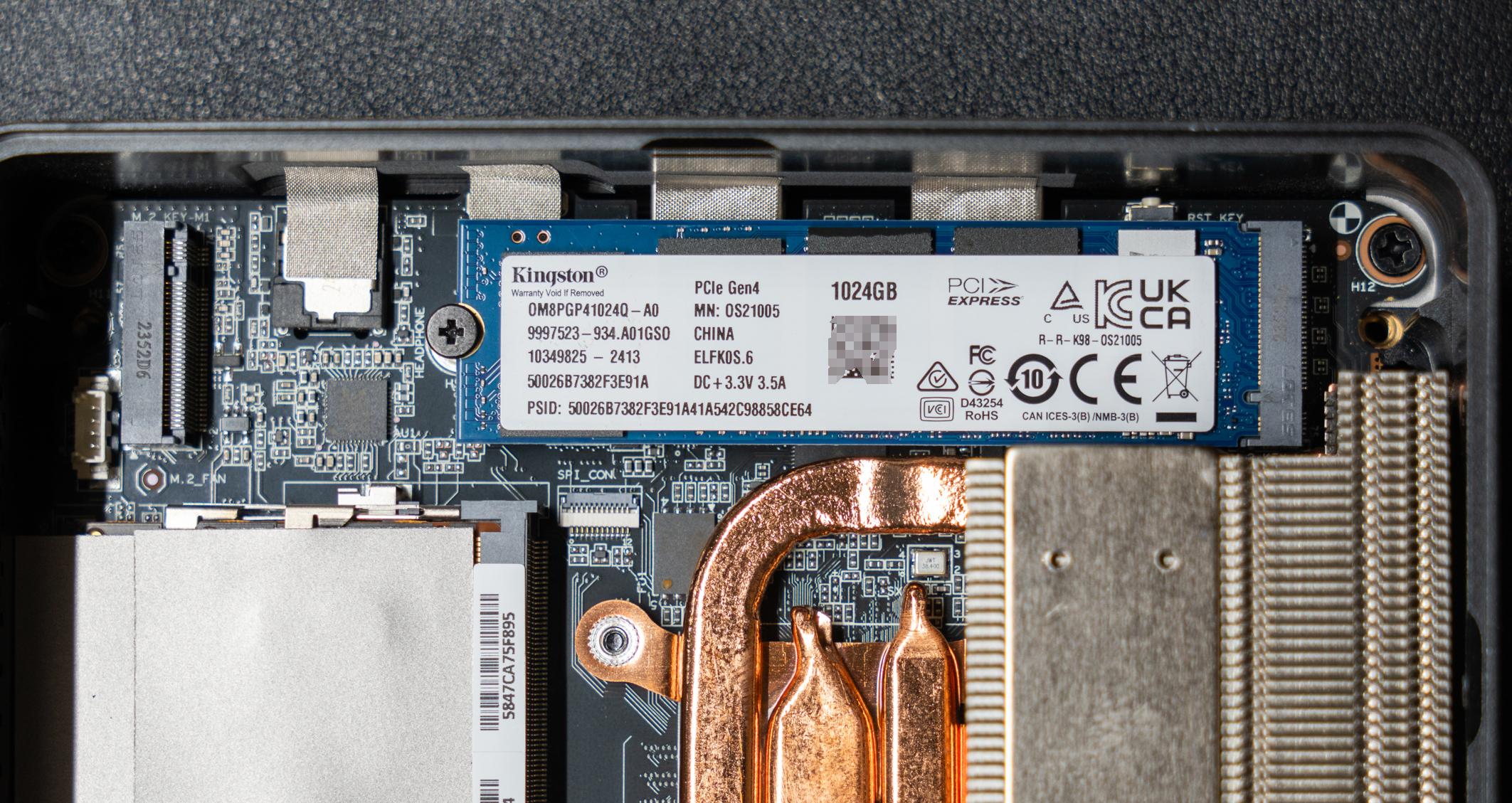 马甲下面是一条型号为OM8PGP410240的金士顿PCIe 4.0硬盘,据分析应该金士顿nv2的oem版本。