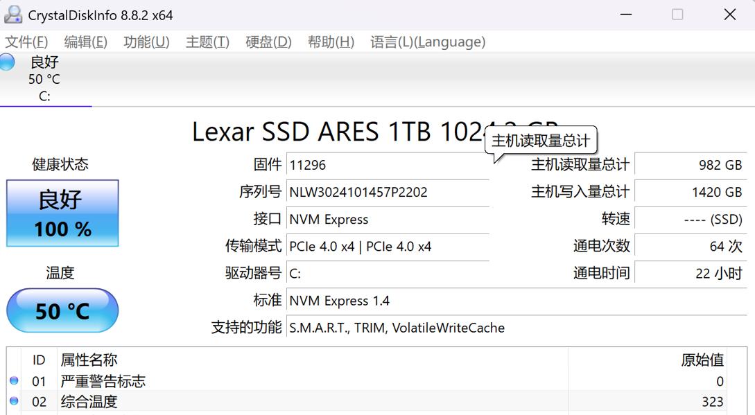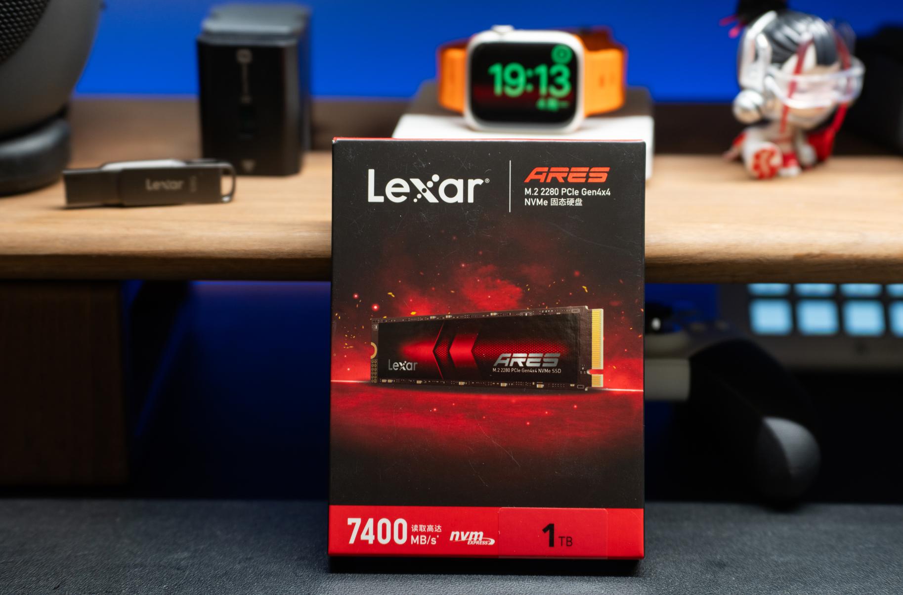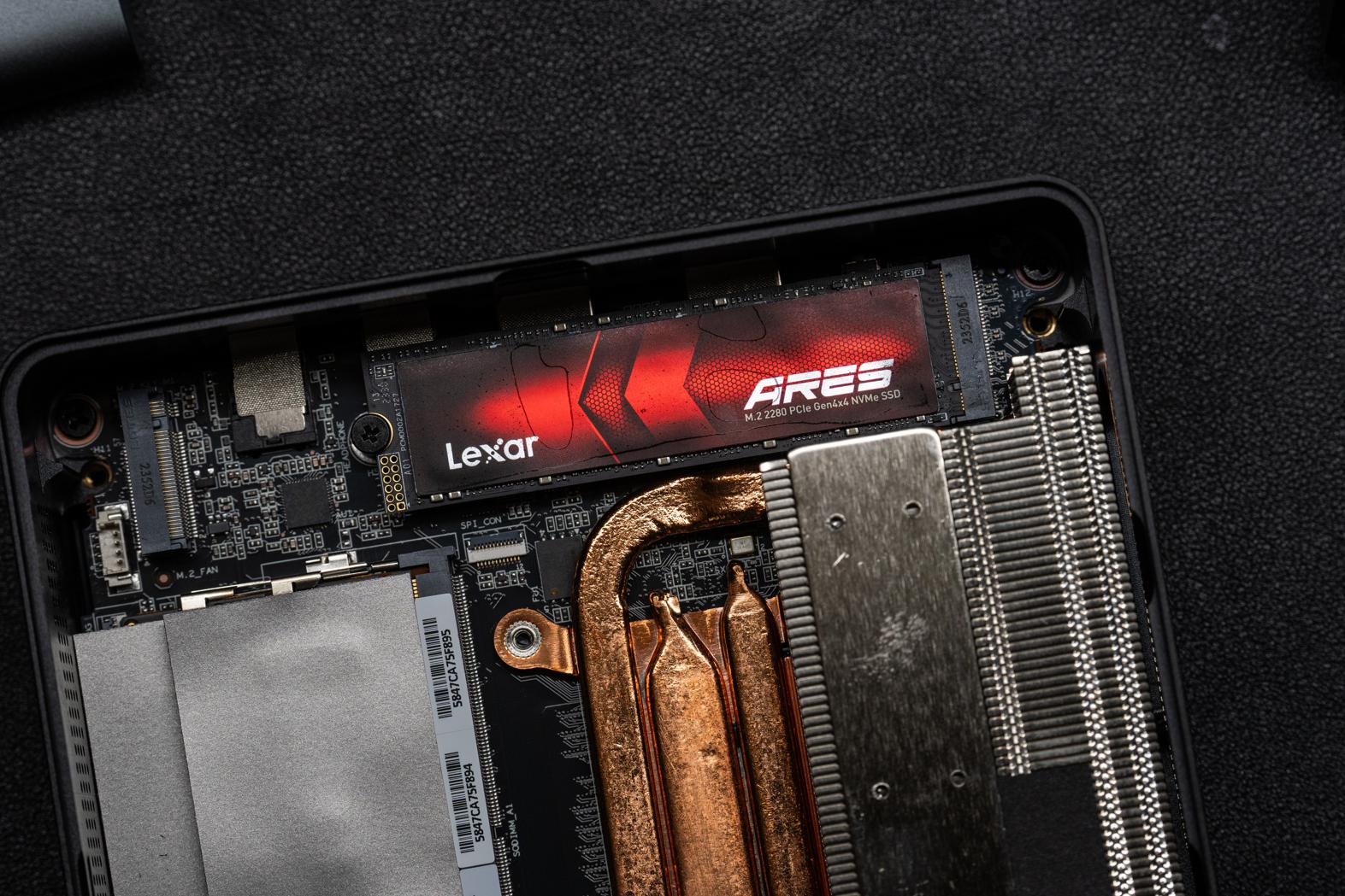 为了测试这台主机M2插槽的性能,我替换了一条雷克沙的ARES战神进行测试,这也是一块PCIe 4.0规格的产品,官方宣传顺序读速为7400MB/s,是雷克沙PCIe 4.0产品中的挑梁之作了。