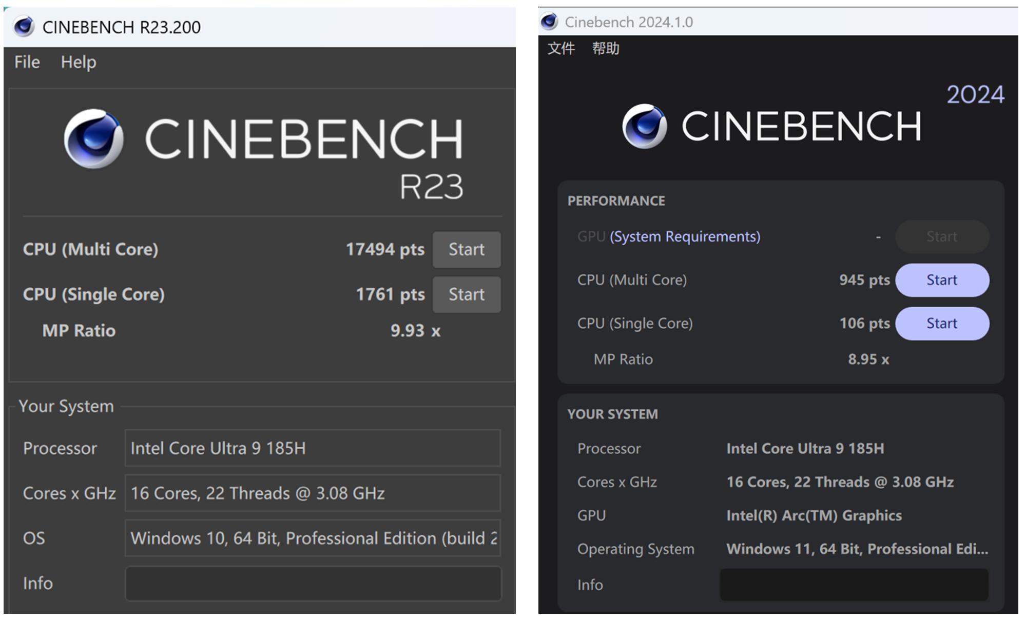 在R24多核得分945,单核得分106。