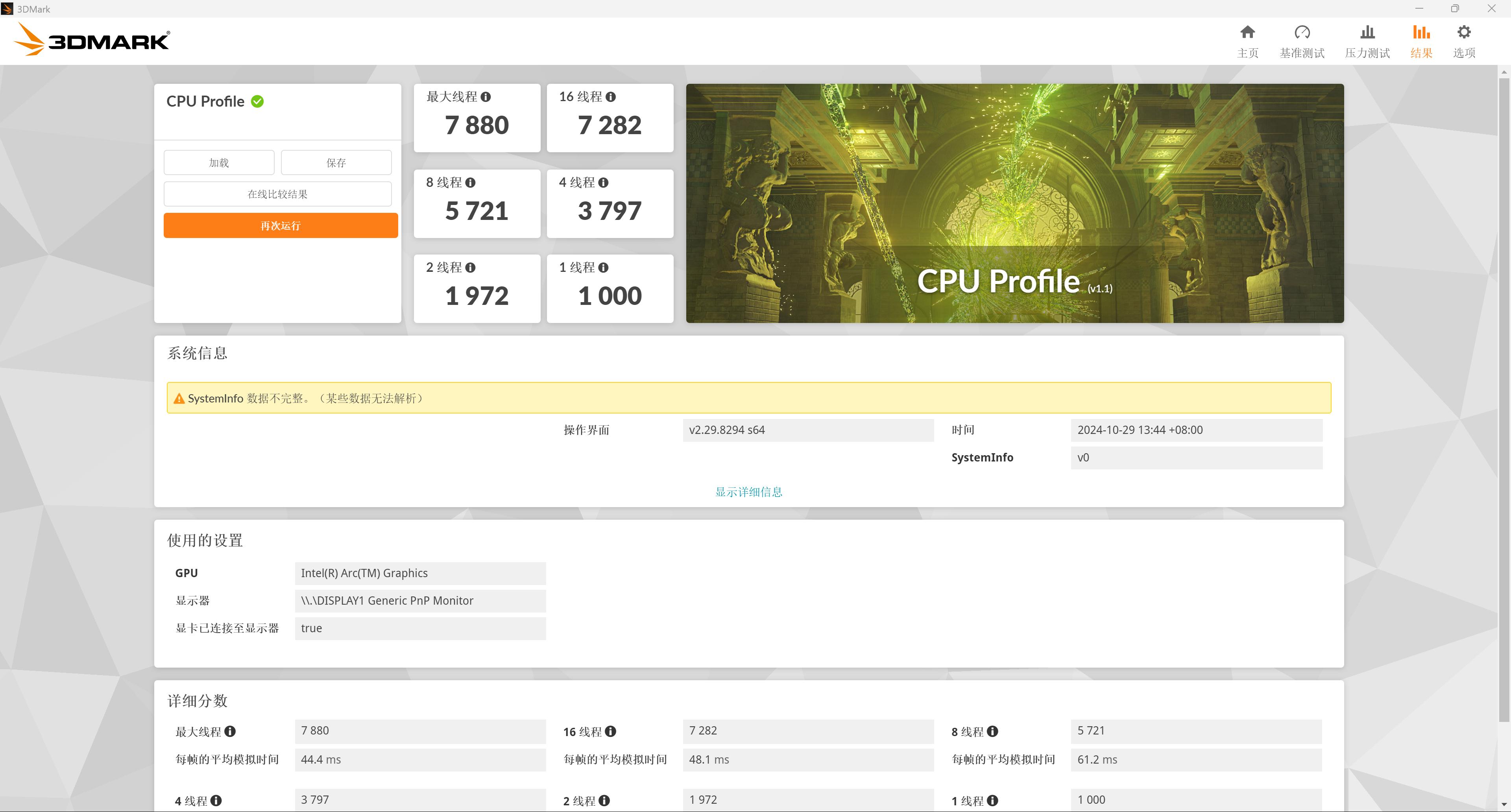 使用3D MARK的PUC测试,最大线程得分为7880分(AMD 8845HS为7577)!单线程为1000分(AMD 8845HS为992)!