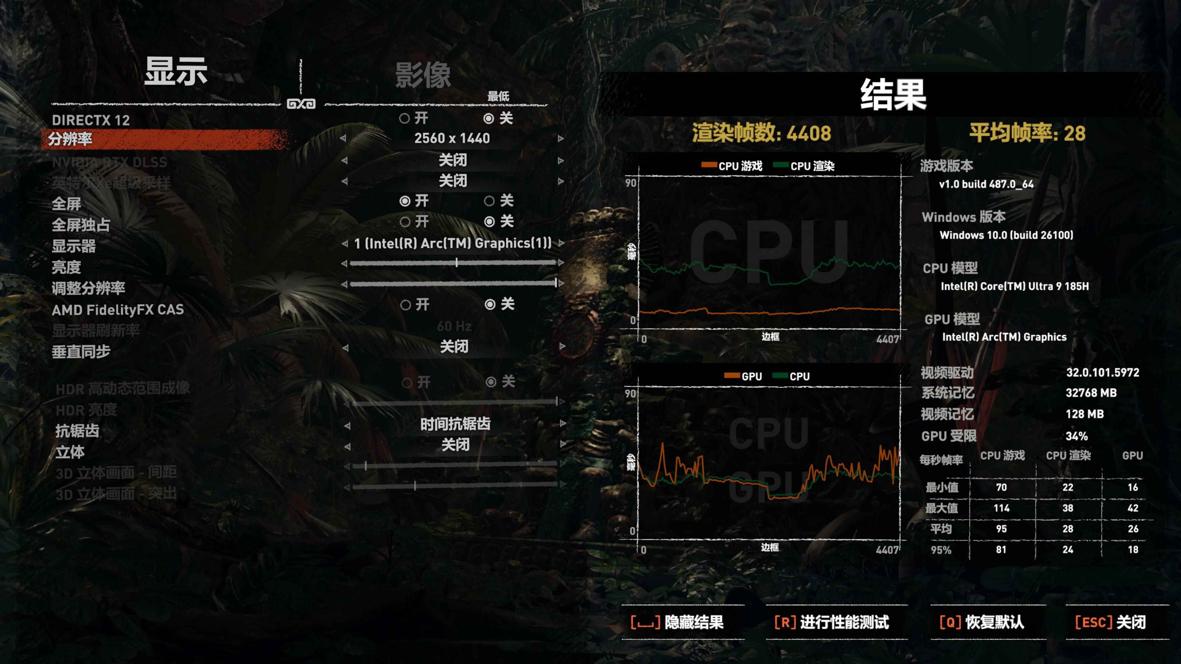 用老一点的古墓丽影暗影进行测试,在2K分辨率下实测平均28帧,基本没法玩。
