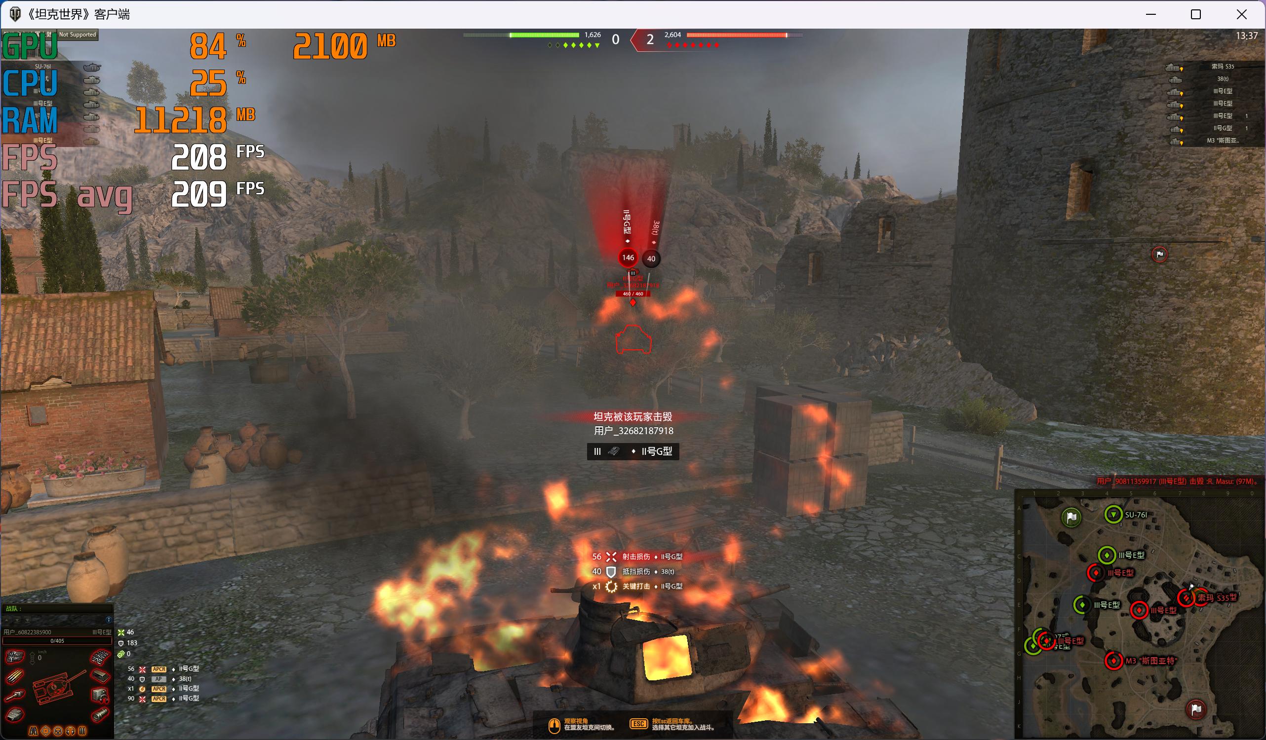 坦克世界2K分辨率低画质,平均帧率可以到209帧,完全能放开玩!