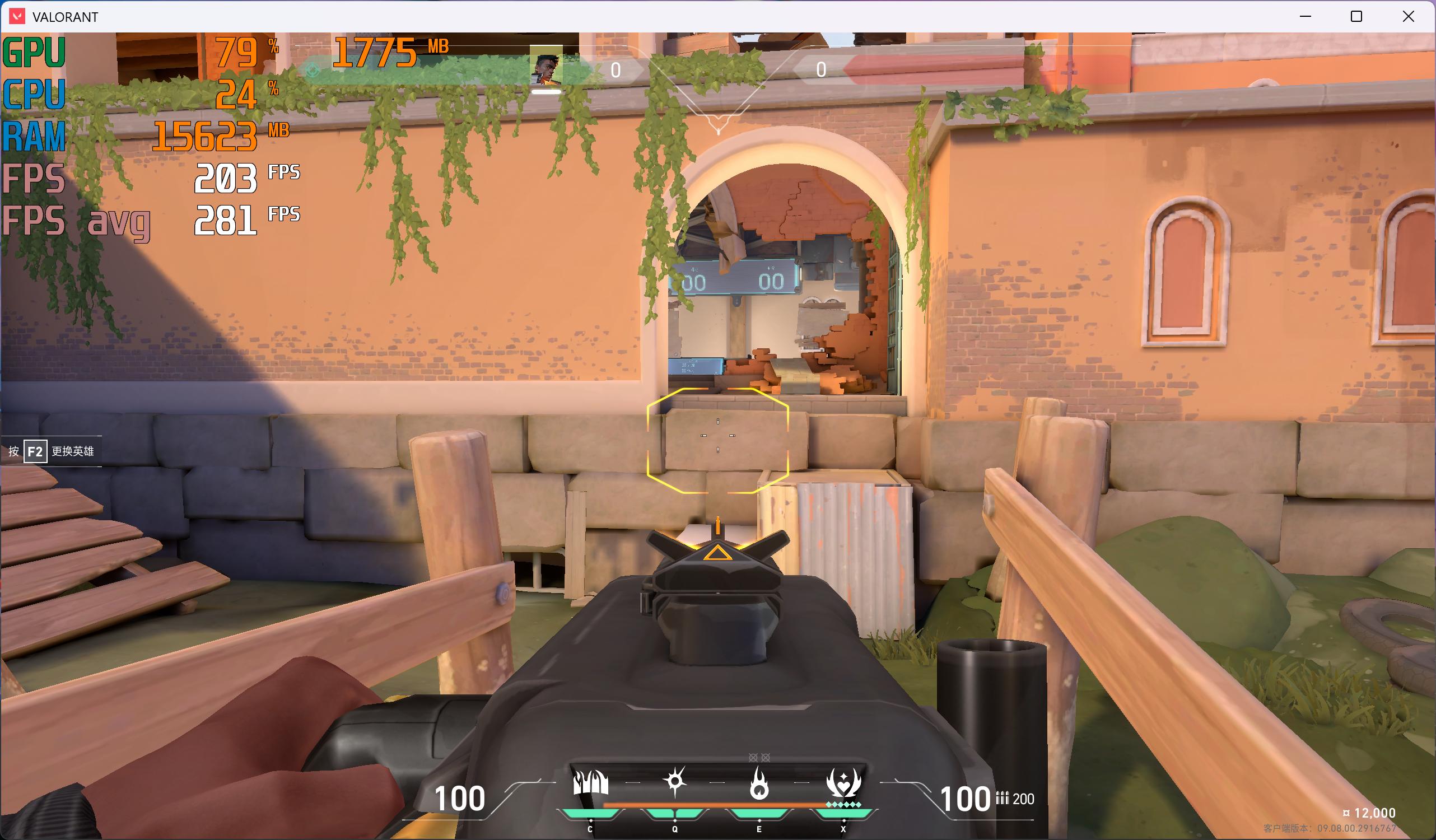 无畏契约2K分辨率低画质,平均帧率更是到281帧,随便玩!