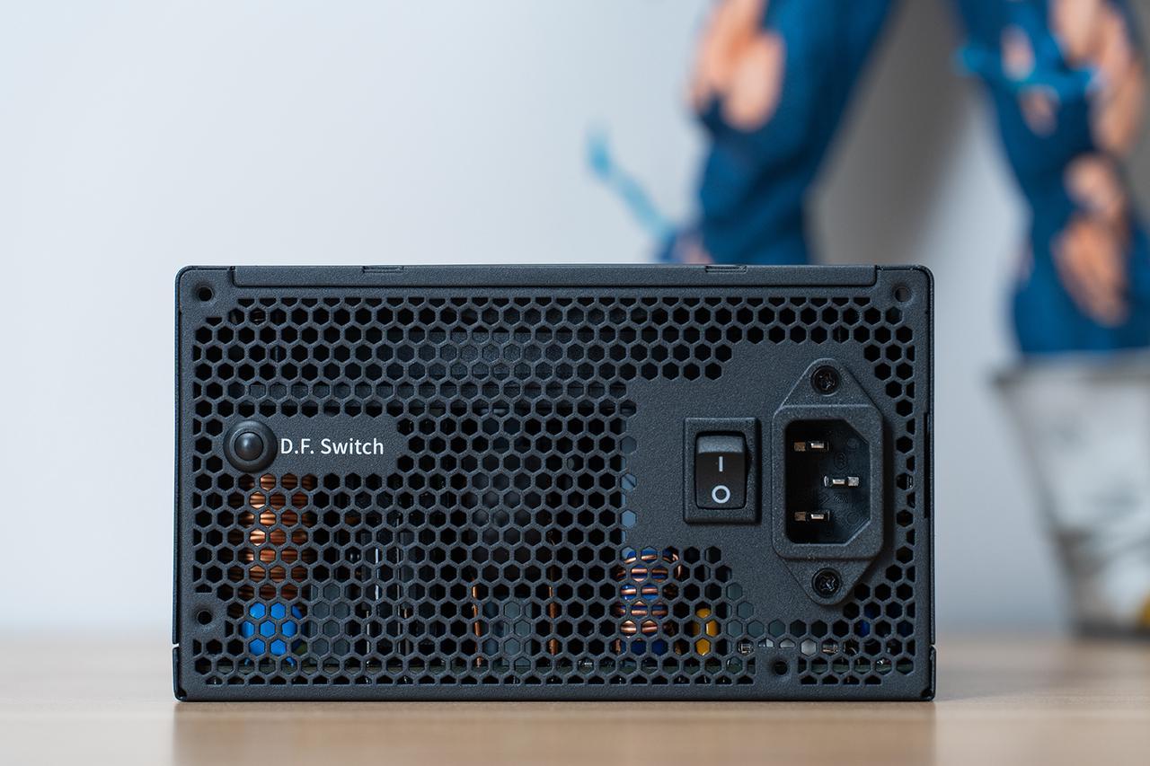 PlatimaxII 1000使用了第二代逆转弹尘技术,电源在启动时前20秒(一代为10秒)风扇会高速逆转来甩掉堆积的灰尘,减少灰尘堆积。而背后的D.F.Switch按键是可以在电源运行时,手动开启20秒逆转弹尘功能。