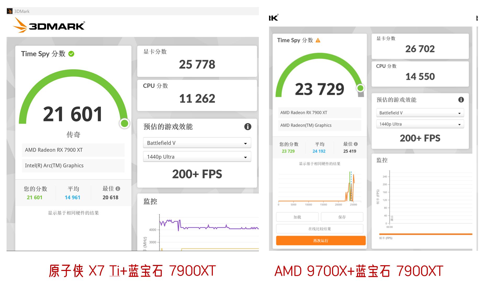在3D mark的Time Spy实测下显卡得分为25778分,相较于我台式电脑9700X+蓝宝石7900XT的26702分,几乎没啥差别了。