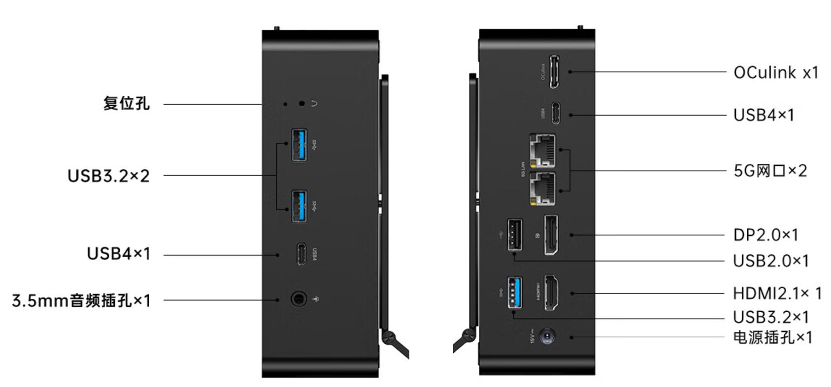 右边有个非常特殊的OCulink接口是连接显卡坞使用的,这里后面细说。