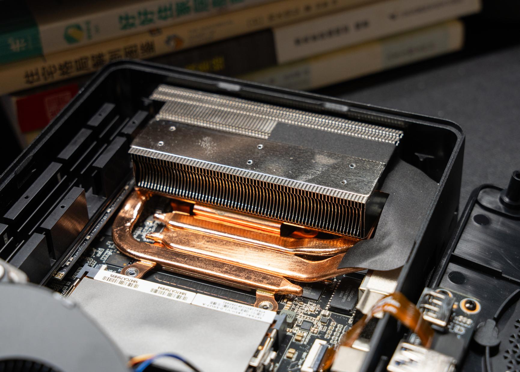 黄色的散热铜管盖住ultra 芯片,散热规格还是很生猛的。